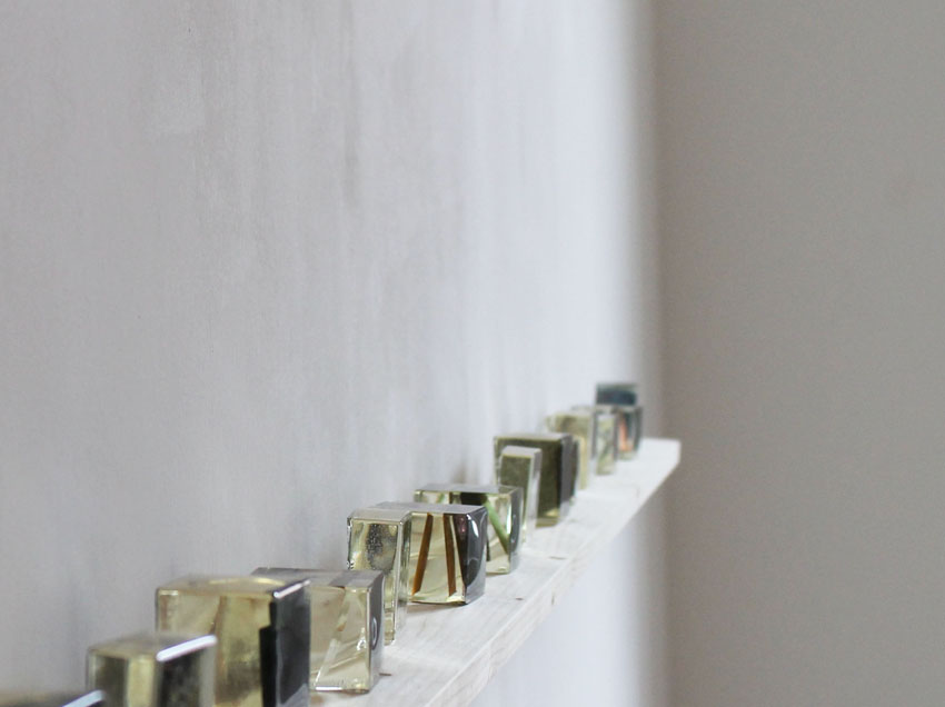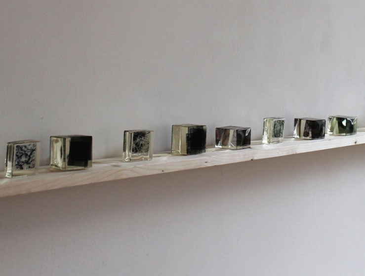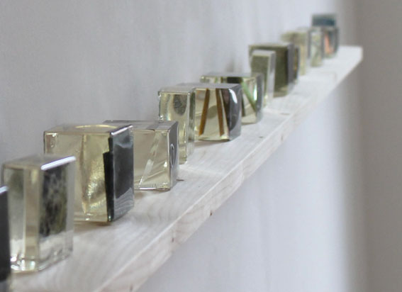 Aurora Paolillo > Catalogo dei luoghi, epoxy resin, photography on acetate paper, 2013 – 2014; Residui, epoxy resin with natural elements, 2013